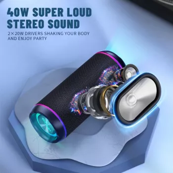 40W Portable Bluetooth Speaker with RGB Light, Waterproof & TWS Pairing